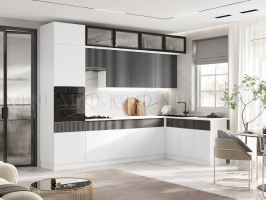 ШНУ1000 Шкаф нижний угловой левый Белый глянец холодный/Графит софт