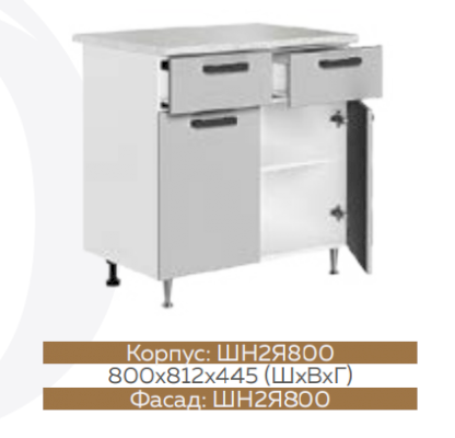 ШН2Я800 Шкаф нижний с 2-мя ящиками Белый глянец холодный/Графит софт