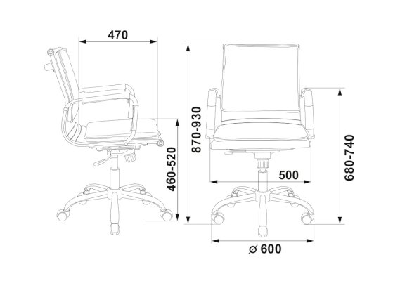 Высота с подлокотниками: 680-740