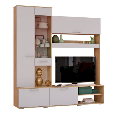 Гостиная Флай идеально подчеркнет сдержанный интерьер, при этом добавит лоска за счёт фасадов из матового ЛДСП белого цвета. В данной модели вы сможете разместить не только телевизор, но и различные мелочи, документы, сувениры или книги. Нестандартное расположение открытых полок придает гостиной Флай невесомости и делает ее очень стильной.