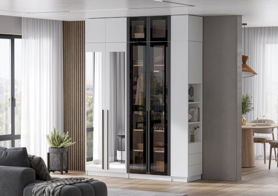 Материал фасада: МДФ, тонированное стекло