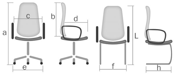 вариант исполнения а.высота b.спинка c.ширина d.глубина e.диаметр крест. L.высота f.ширина h.глубина