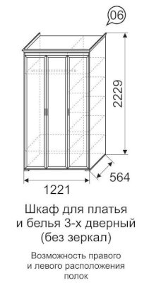 Шкаф 3х дверный 06 Афродита (Арника) - за 38 059 руб. в Петрозаводске. Купите на сайте petrozavodsk.onlinemarketmebeli.ru или по телефону 8(800)505-30-63 уже сегодня! Уточнить наличие, комплектацию, актуальную цену можно бесплатно у менеджера ежедневно. Закажите Шкаф 3х дверный 06 Афродита (Арника) до конца акции! Доступна покупка в кредит, рассрочку. Доставим со склада или на заказ.