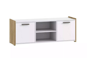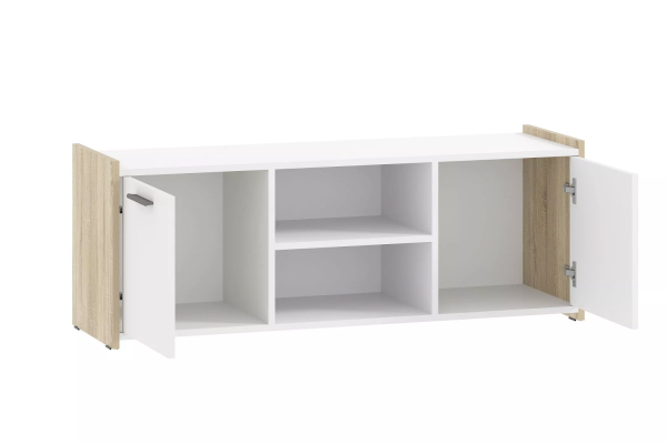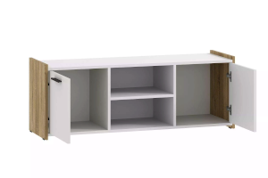 Тумба ТВА Симпл выполнена в скандинавском стиле и имеет малые габариты, что делает ее функциональной и стильной. Характерная особенность тумбы - комбинация открытых полок и ящиков. На полках можно разместить предметы декора и книги, а в ящиках за распашными дверями расположить все необходимые мелочи.