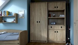 Шкаф - компактное и универсальное решение для хранения вещей. Декоративные накладки и профиль из МДФ по вертикальным краям корпуса закрывают острые края и придают шкафу более эффектный и надежной вид. Украшением служат стилизованные металлические ручки MARINE бронзового цвета и декоративные элементы в тон. Идеально компонуется со всеми модулями системы Валенсия.