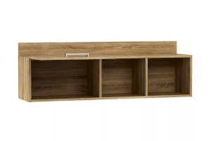 Полка органично дополнит рабочее место в детской. Закрытая секция модуля подойдет для хранения книг. Газлифты максимально высоко поднимают фасад вверх, обеспечивая большую площадь обзора содержимого. Предметы декора будут хорошо смотреться в открытых секциях полки.
