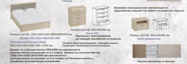 Спальное место: 90/120/140/160/180х200