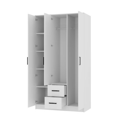 Шкаф «Фьюжн» ШК-09 с тремя отсеками для хранения – простое и многофункциональное решение для современного жилища. Модель оснащена двумя вертикальными зонами для хранения со штангами, а также отсеком с пятью полками и двумя выдвижными ящиками.