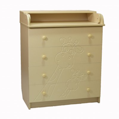 Вам понравится привлекательный внешний вид детского комода. На его лицевой части вы увидите углубленный декор в виде жирафа.