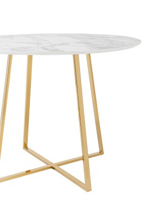 Лаконичный обеденный стол для кухни. Круглая столешница с рисунком белого мрамора выполнена из МДФ - прочного, экологически безопасного материала, который устойчив к перепадам температур и повышенной влажности. Поверхность столешницы декорирована рисунком белого мрамора, который идеально сочетается с металлическими ножками. Защитные подпятники на ножках предотвращают порчу напольного покрытия.