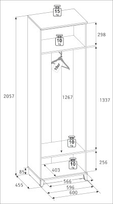 Максимальная нагрузка на полку: 10 кг