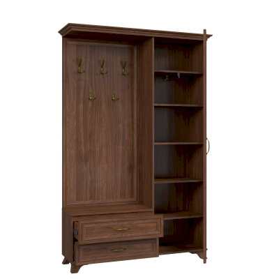 Наполнение: Шкаф с полками и выдвижной штангой + вешалка + два выдвижных ящика