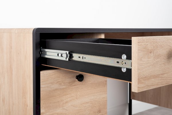 Стильный и эргономичный письменный стол Брюс – ваше комфортное рабочее место. Каркас из металла, столешница из МДФ с закруглением и тактильно приятные металлические ручки с накаткой – визитная карточка модели. Также стол имеет регулируемые опоры и ящики с направляющими полного выдвижения.
