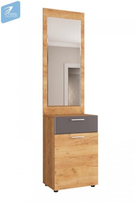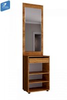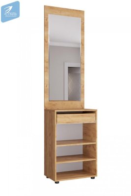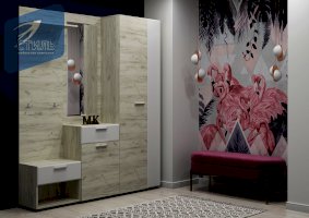 Вместительные тумбы с выдвижными ящиками позволяют хранить как обувь, так и десятки необходимых мелочей. Большое зеркало с фацетом, по периметру, позволит не упустить ничего в своей внешности перед выходом из дома. А емкий шкаф вместит всю необходимую одежду, для актуального сезона.