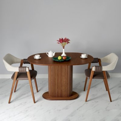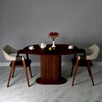 Стол отличается своей массивностью, он прекрасно подойдет для классического и интерьера в стиле модерн, для кухни и для просторной гостиной.