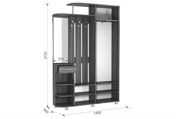 Прихожая «Барселона-2» обладает испанским характером – она стильная и добродушная. Вы можете разместить одежду в шкафу с выдвижной штангой или на вешалке с крючками, обувь сложить в нижний шкаф, шляпки на специальную верхнюю полку, а мелочи в выдвижной ящик и открытые полки. Есть зеркало.