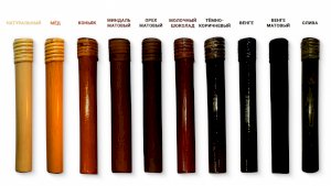 Цвета: натуральный, мед, коньяк, миндаль матовый, орех матовый, молочный шоколад, темно-коричневый, венге, венге матовый, олива.