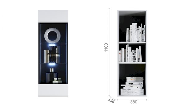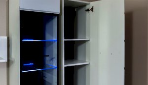 Светодиодная подсветка синего цвета для полок 2 класса Йорк подойдет к навесному пеналу-витрине 02 и комоду с витриной.