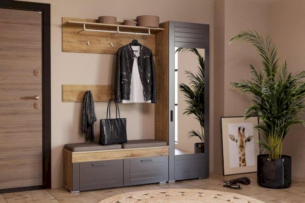 Вешалка Livorno - стильная замена платяному шкафу в малогабаритной прихожей. Модуль выполнен в виде настенной панели с тремя крючками для одежды. В верхней части вешалки расположены полка для головных уборов и аксессуаров. Модель также оснащена штангой для аккуратного размещения одежды на вешалках-плечиках.