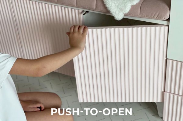 Сочетание белого дерева в корпусе и пудрово-розового оттенка на фасадах создает неповторимую атмосферу нежности и романтизма. Фрезеровка в виде вертикальных полос придает фасадам особый шарм и добавляет элементы классического дизайна.