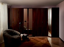 Зеркальный фасад проклеен с тыльной стороны специальной пленкой, которая задержит падение осколков в том случае, если зеркало разобьется. Аккуратная рама из МДФ по периметру фасада не делит отражение и позволяет увидеть себя в полный рост без помех.
