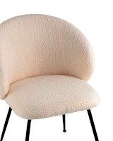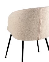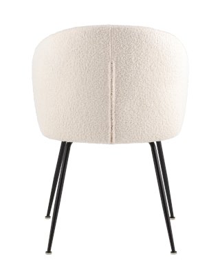 Комфортный стул с плавно огибающей сиденье спинкой обеспечит удобство при посадке. Обивка из плотного материала букле, которая обладает мягкостью и долговечностью. Красивый и очень мягкий материал, который оставляет ощущение теплоты и уюта. Прочная конструкция выдерживает нагрузки до 150 кг. Лаконичный дизайн стула дополнит любой интерьер и будет прекрасно смотреться в комплекте с обеденным столом. Ножки выполнены в черном цвете и оснащены специальными подпятниками, которые препятствуют скольжению и предотвращают царапанье напольного покрытия.