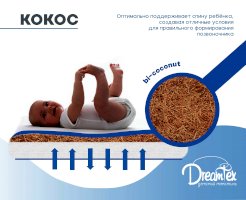 Прямоугольный матрас для кроватки Dreams Smart латекс 1 см + холкон 8 см + биококос 3 см (Dreams)